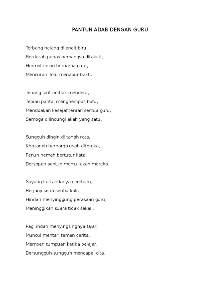 . Mungkin kumpulan pantun tentang semangat belajar yang dipaparkan di bawah ini dapat menjadi media untuk kamu dalam memotivasi diri. Apabila Hari Guru tiba Azizah terlalu gembira untuk menyerahkan hadiah kepada cikgu kesayangannya. Setelah mempelajari cara menganyam daripada emaknya Azizah berusaha untuk menyiapkan tudung saji yang cantik untuk diberikan kepada Cikgu Zaleha.